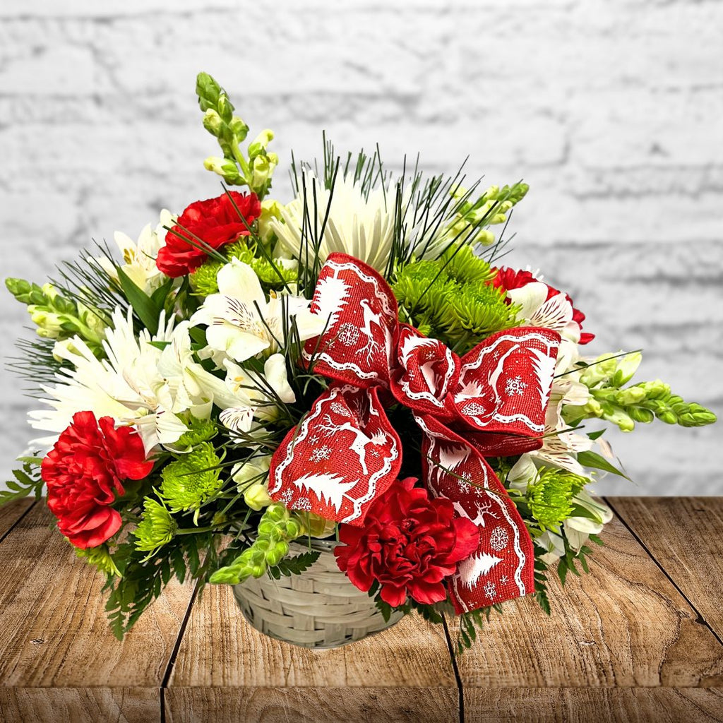 Let the Christmas season warm your heart and the hearts of many. Festive Christmas flowers bring tidings of love, joy and good will. A Christmas centerpiece on your family table or friends table will make for a merry gathering.